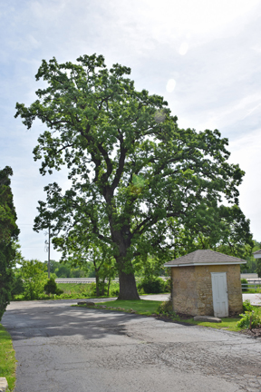 - Tree behind Quivey’s Grove stone house on Nesbitt Rd; 43o 00′ 33.14” N 89o 28′ 42.76” W