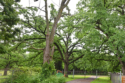 In 1976 as part of the bicentennial celebrations, Walter Scott from the Wisconsin State Department of Natural Resources lead a survey to find trees in an 8-mile radius of the state capital that were estimated to be at least 200 years old. The Fitchburg Parks, Recreation and Forestry Department had identified the original old trees in Fitchburg and is working to identify new trees that meet the age requirement as well as to identify the old trees that are no longer standing. The 200 plus year old trees have been called Heritage Trees and are identified by their circumference at 4.5 feet above ground level. White and bur oaks need a trunk circumference of at least 10 feet. Pin, black and red oaks need a circumference of at least 11 feet. As of several years ago they had identified 115 trees of this age or older.