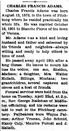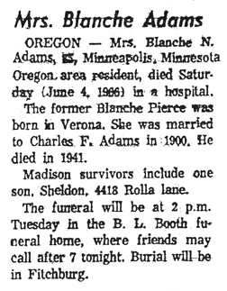 Adams, Blanche N (nee Pierce) Obit Cemetery