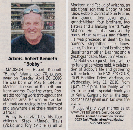 Adams, Robert Kenneth “Bobby” Obit Cemetery