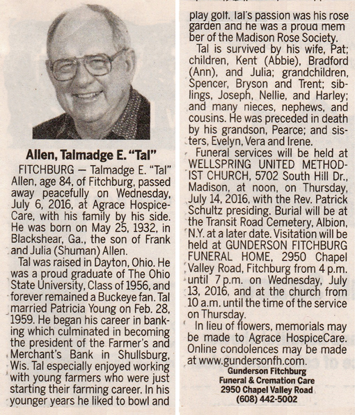 Allen, Talmadge E. “Tal” Obit Cemetery