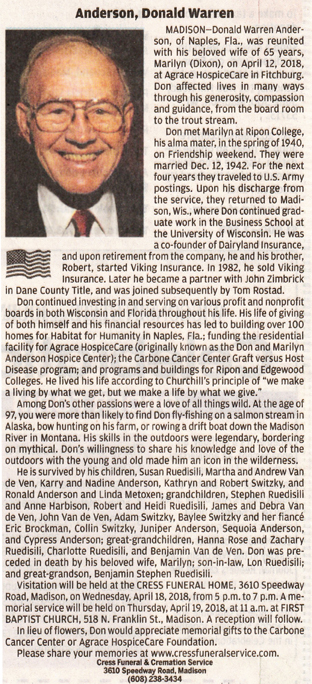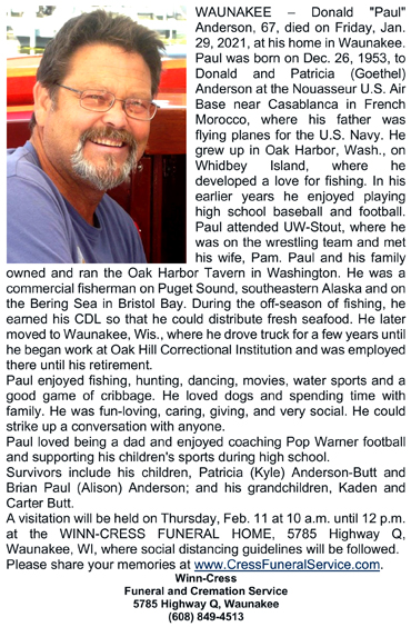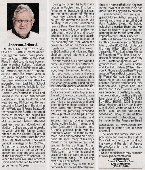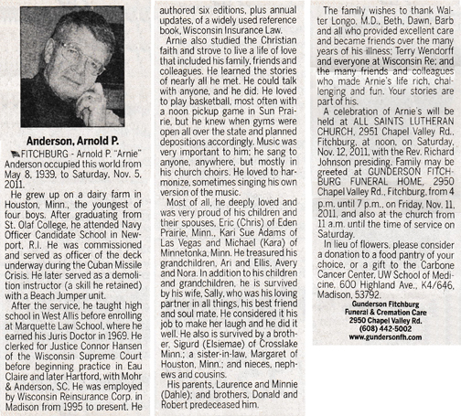 Anderson, Arnold P. “Arnie” Obit Cemetery