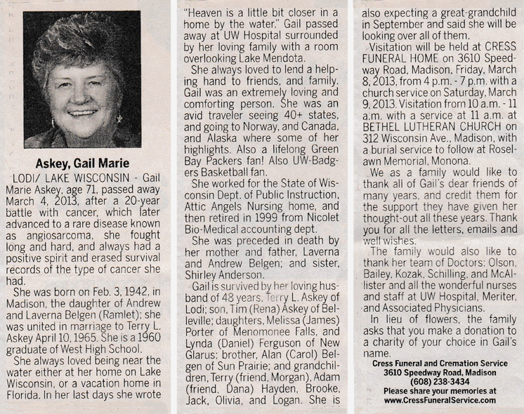 Askey, Gail Marie (nee Belgen) Obit Cemetery