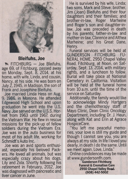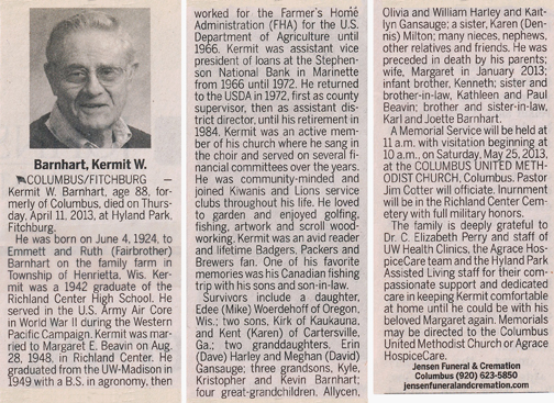 Brickner, Bernard R. “Bernie” “Buzz” Obit Cemetery