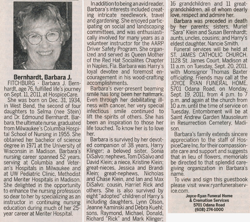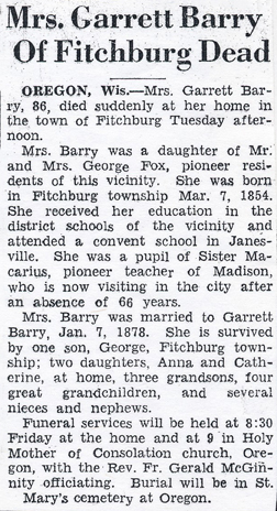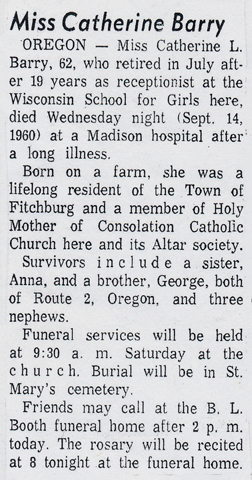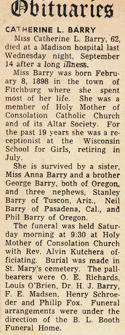 Barry, Catherine L Obit 1 Obit 2 Cemetery