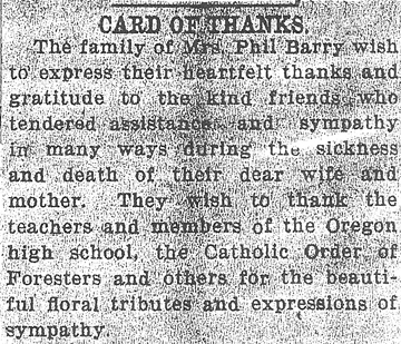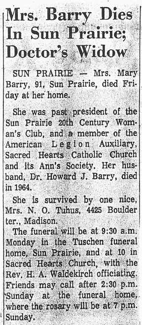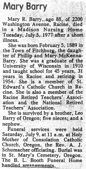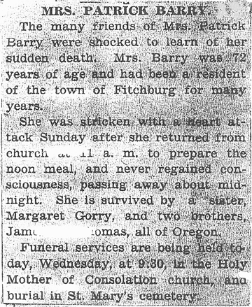Barry, Mary (nee McKenna] Obit 1 Obit 2 Obit 3 Cemetery