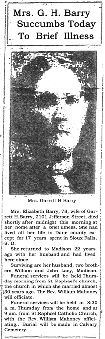 Barry, Elizabeth L “Libbie” (nee Lacy) Obit Cemetery