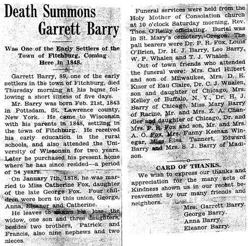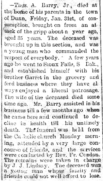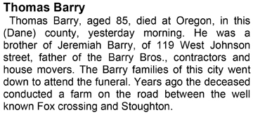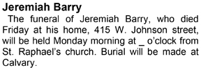 Barry, Patrick Obit 1 Obit 2 Cemetery