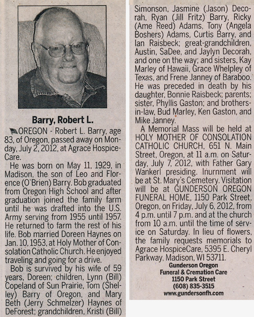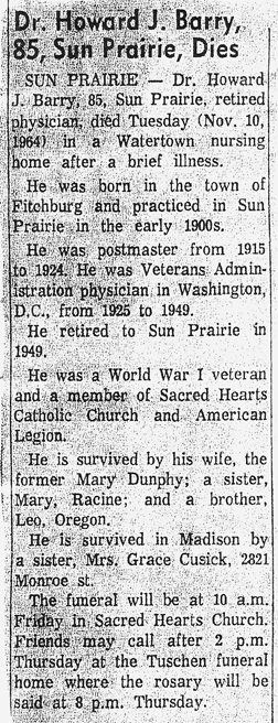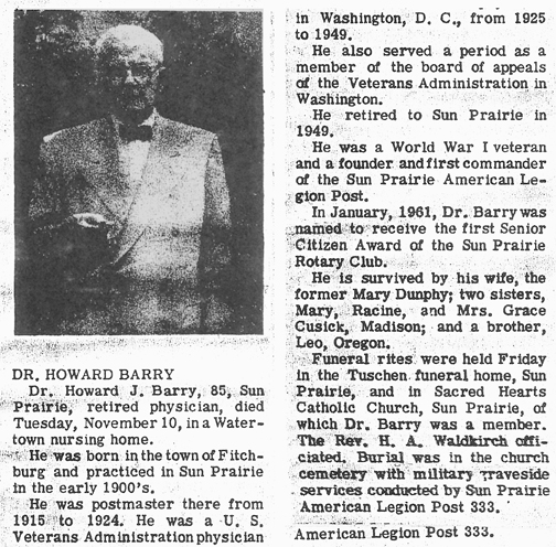 Barry, Howard Jerome Obit 1 Obit 2 Obit 3 Cemetery