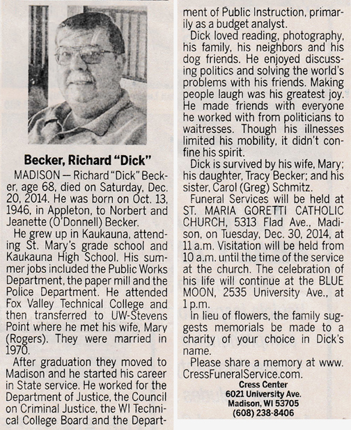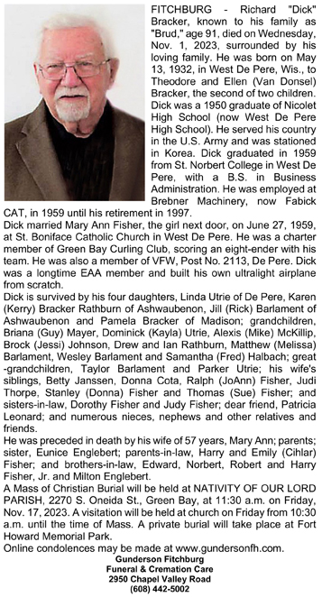Bracker, Richard “Dick, Brud” Obit Cemetery