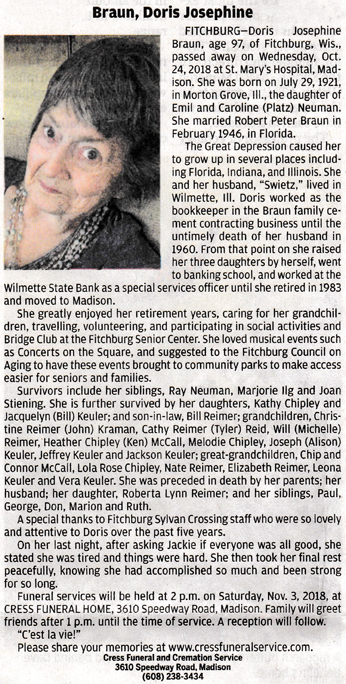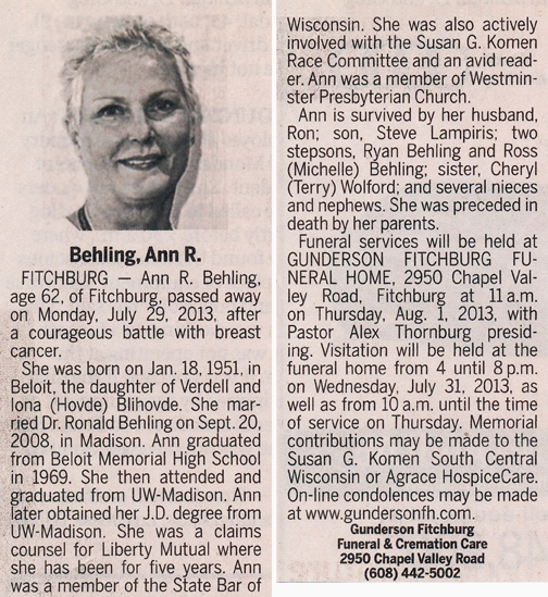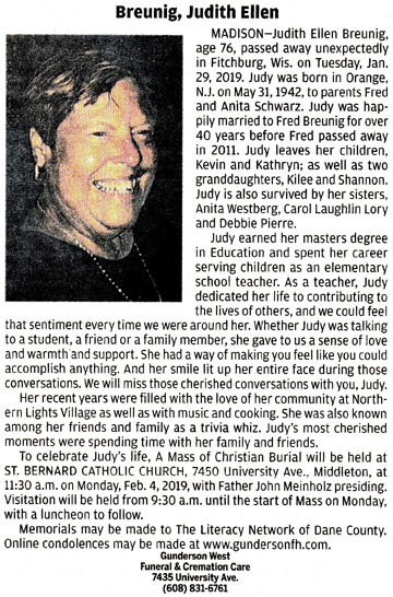Breunig, Judith Ellen (nee Swartz) Obit Cemetery
