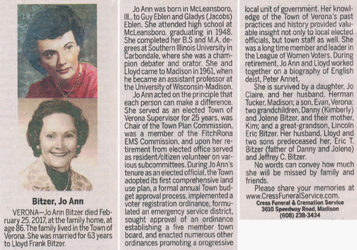 Bitzer, Jo Ann (nee Eblen) Obit Cemetery