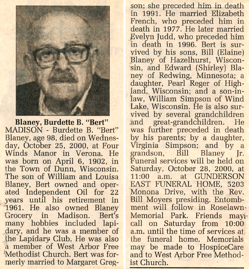 Blaney, Burdette Bram “Bert” Obit Cemetery