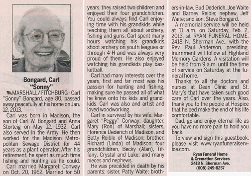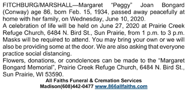 Bongard, Margaret “Peggy” Joan (nee Conway) Obit Cemetery