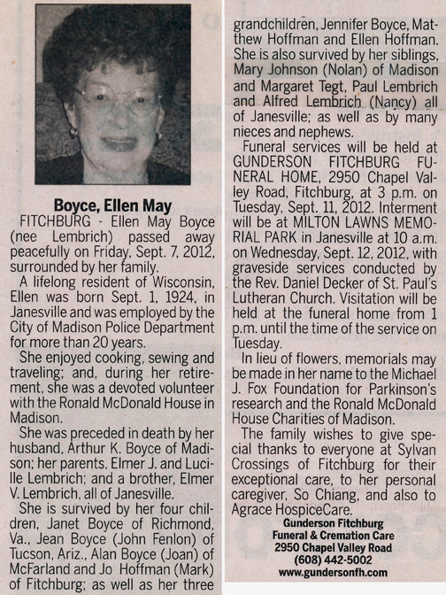 Boyce, Ellen May (nee Lembrich) Obit Cemetery