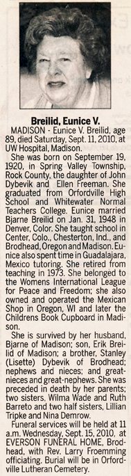 Breilid, Eunice V. (nee Dybevik) Obit Cemetery