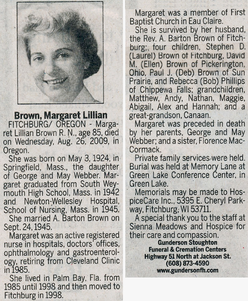 Brown, Margaret Lillian (nee Webber) Obit Cemetery