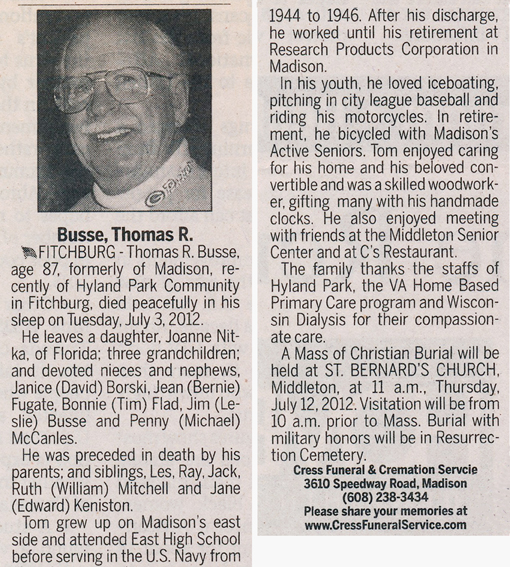 Busse, Theresa C. (nee Bartosch) Obit Cemetery