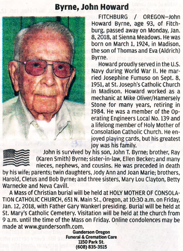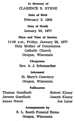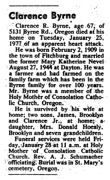 Byrne, Clarence Obit 1 Obit 2 Cemetery
