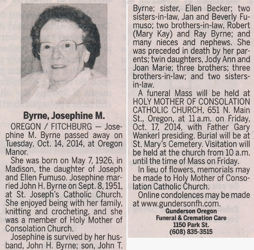 Byrne, Josephine M. (nee Fumuso) Obit Cemetery