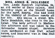Bancroft, Annis (nee Ingalsbe) Obit Cemetery