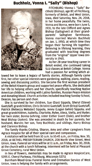 Buchholz, Donna I. “Sally” (nee Bishop) Obit Cemetery