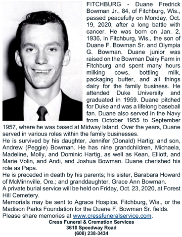 Bowman, Duane Fredrick Jr. Obit Cemetery