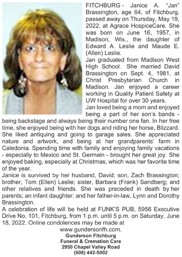 Brassington, Janice A. “Jan” (nee Leslie) Obit