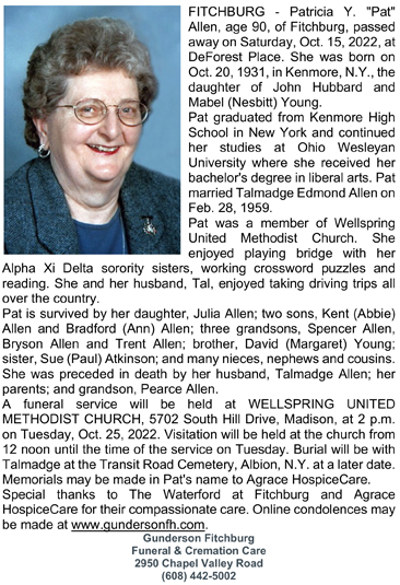 Allen, Patricia Y. “Pat” (nee Young) Obit Cemetery