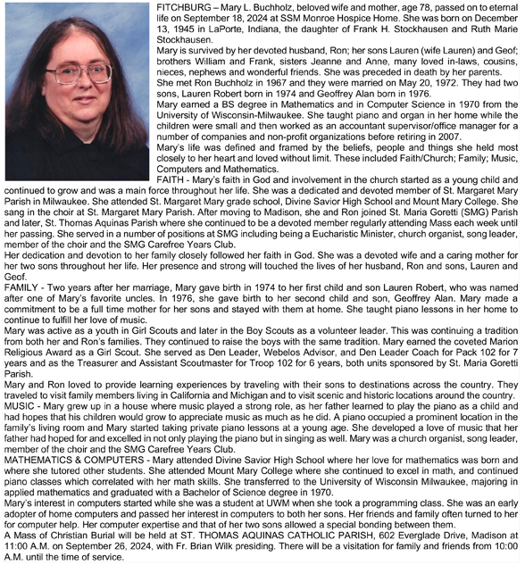 Buchholz, Mary L. (nee Stockhausen) Obit