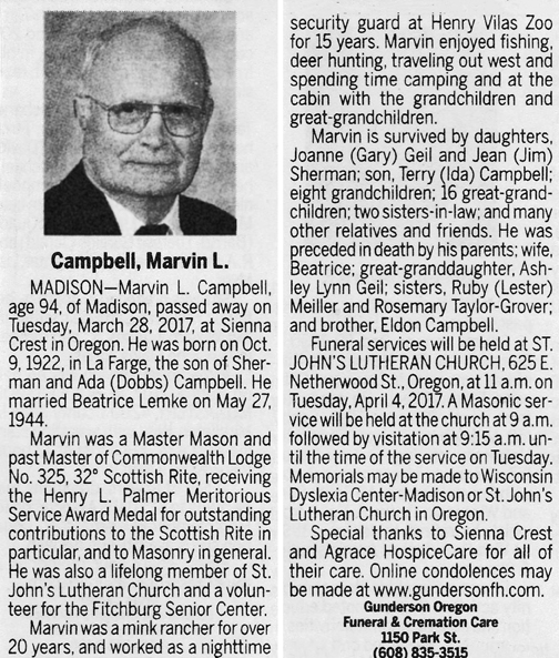 Campbell, Marvin L. Obit Cemetery