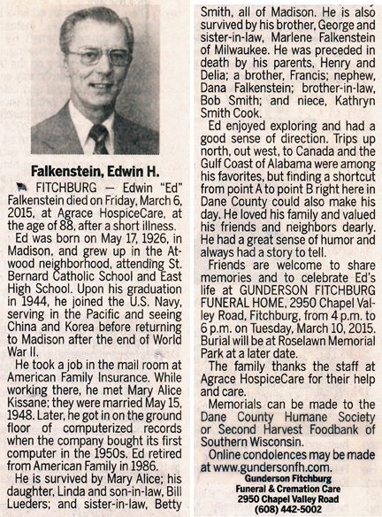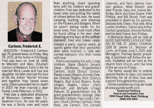 Carlson, Frederick E. Obit Cemetery
