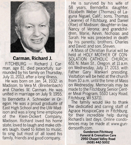 Carman, Richard J. Obit