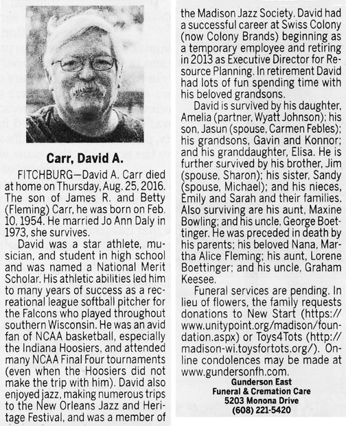 Carr, David A. Obit