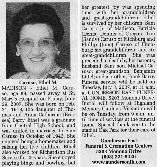 Caruso, Ethel M. (nee Barry) Obit Cemetery