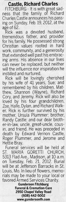 Castle, Richard Charles Obit Cemetery