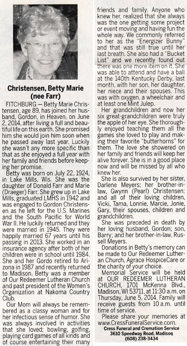 Christensen, Betty Marie (nee Farr) Obit