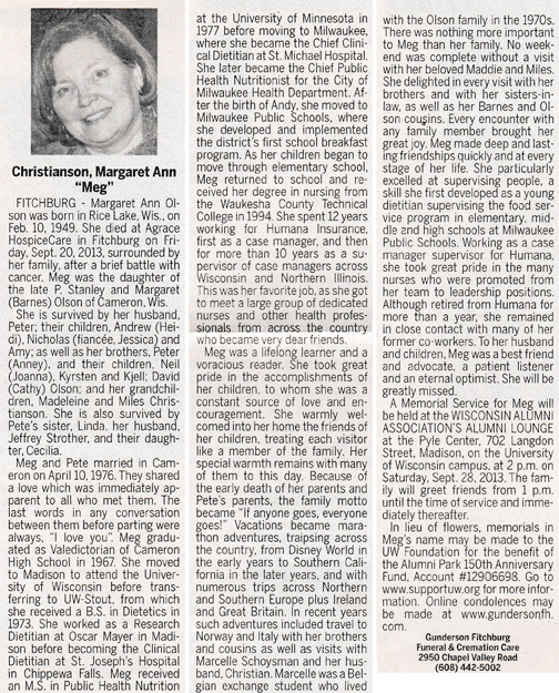 Christianson, Margaret Ann “Meg” (nee Olson) Obit