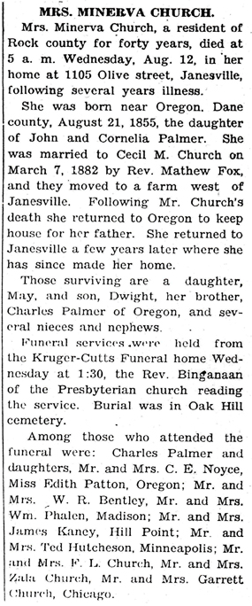 Church, Minerva Jane “Mammie” (nee Palmer) Obit Cemetery