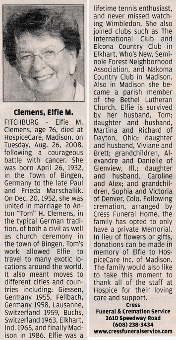 Clemens, Elfie M. (nee Marschallik) Obit