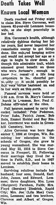 Corcoran, Alice (nee Byrnes) Obit 1 Obit 2