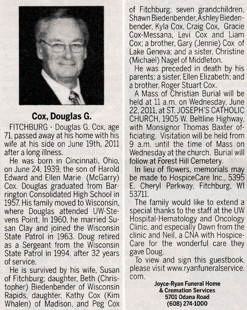 Cox, Douglas G. Obit Cemetery