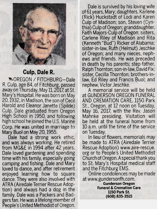 Culp, Dale R. Obit Cemetery