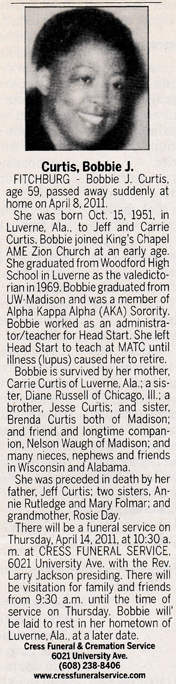 Curtis, Bobbie J. Obit