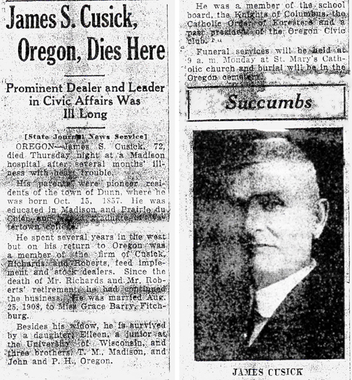 Cusick, James S Obit 1 Obit 2 Cemetery