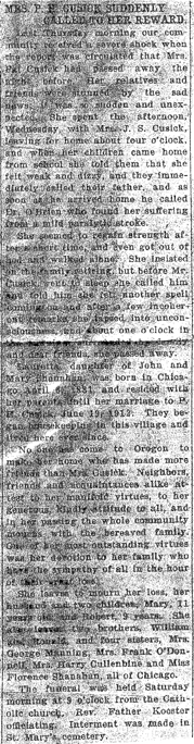 Cusick, Grace (nee Barry) Obit 1 Obit 2 Cemetery