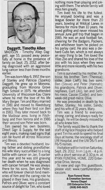 Daggett, Timothy Allen Obit Cemetery