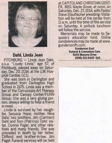Dahl, Linda Jean Obit Cemetery