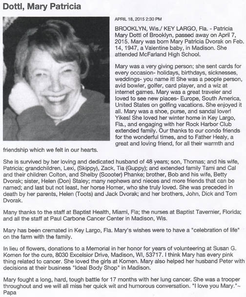 Gottsacker, Bonnie Louise (nee Feltes) Obit Cemetery