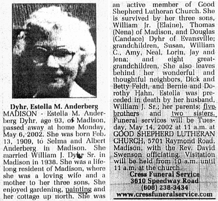 Dahl, Rose Ellen (nee McKee) Obit Cemetery